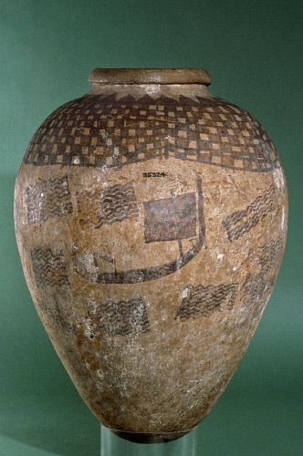 Paddling north with the Nile’s current toward the Mediterranean was relatively easy. Going the opposite way, however, could prove challenging due to the gradient of 1 meter per every 13 kilometers between the First Cataract and the sea, particularly during the annual flood season between June and September. However, the wind blows from the Mediterranean making sailing up the Nile a more viable option than paddling. Although the first use of a sail on Nile river boats is unknown, the oldest known depiction of a sail in the world appears on a vase discovered in Gerzeh, Egypt, and dates to around 3300-3100 BCE. The Gerzean vase depicting the first known use of the sail shows a single square sail on a mast that is positioned well-forward on the vessel (Paine, 2013, p. 43).
