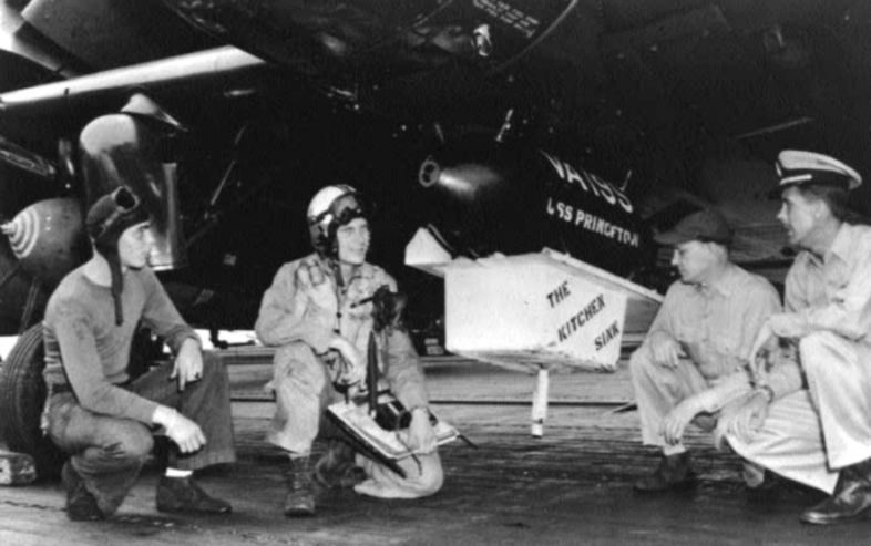 The “Sani-Flush” toilet certainly was not the first time the U.S. Navy dropped something unusual on the enemy. Again, the Skyraider was the aircraft of choice for this mission. In August of 1952, during the Korean War, AD-4 Skyraiders from the USS Princeton (CV-37) dropped a sink on the North Koreans. LCDR M.K. Dennis told the press that “we dropped everything on them (the North Koreans) but a kitchen sink.” Reportedly, this did not go well with an admiral, but he caved in to pressure from the press and the sink fell on Pyongyang later that month (as cited in Stilwell, 2020, paras. 8 – 10).