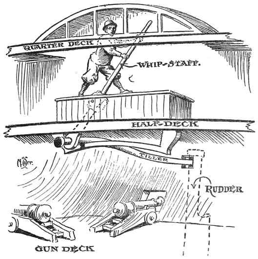 Whipstaffs were generally used from the 16th to the early 18th centuries. They came after the use of the tiller and preceded the use of the wheel for steering a ship.