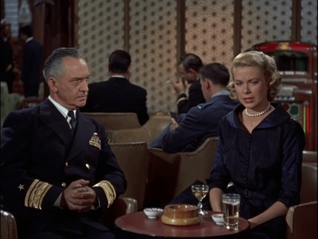 Later, at the Fujiya Hotel, Brubaker and his wife, Nancy (Grace Kelly), are relaxing with Tarrant when Gamidge arrives and informs Brubaker that Forney is in the brig after starting a brawl in Tokyo over the fact that his Japanese girlfriend left him for a sailor from USS Essex. Gamidge begs him to help get Forney out of jail, and Brubaker is forced to abruptly leave his wife and kids. Meanwhile, Tarrant informs Nancy of her husband’s earlier ditching and rescue, as well as the upcoming mission at the bridges at Toko-Ri. He also relates the story of how he lost one of his sons at the Battle of Midway, and how his daughter-in-law and wife were never the same afterward. Therefore, he urges Nancy to accept the reality of the dangers these men face to prepare herself should they be killed.