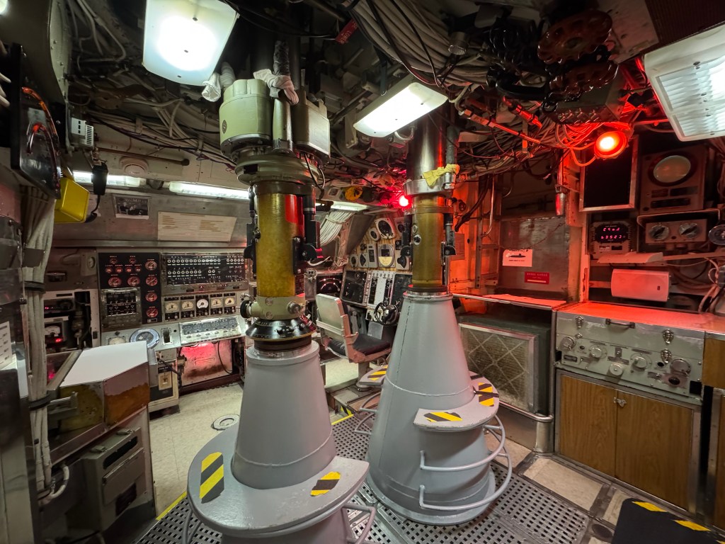 Blueback is a fairly old Cold War-era submarine, in service from 1959 – 1990. Given this older design, the control room is directly beneath the sail. The sail is the large rectangular structure that sticks out of a submarine’s hull. The purpose is to house the masts (including the periscopes) that can retract down into it.