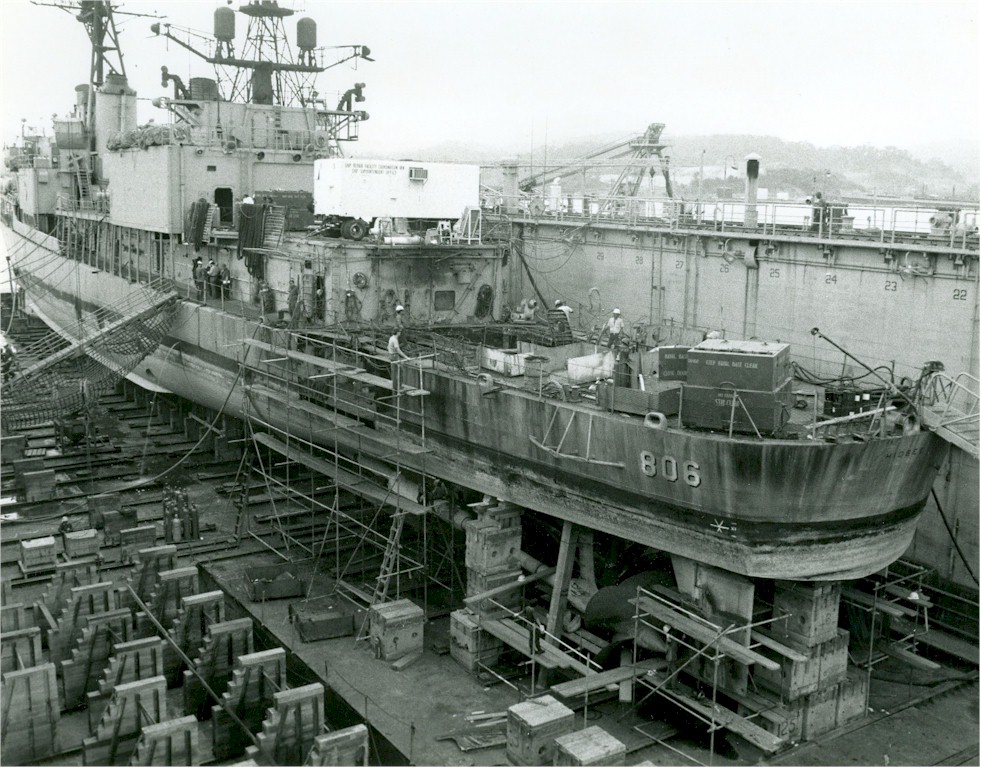 Some other interesting notes from Hamner‘s April 1972 deck log include rescuing a downed Air Force pilot, 1st Lieutenant Richard Lee Abbot, on 2 April. The next day, while conducting naval gunfire support, enemy guns fired back, and about 30 rounds of what’s believed to be 105mm shells splashed 300 – 500 yards astern of the ship. Hamner returned the favor with 118 five-inch shells. (This happened on several other occasions, as well.) On 5 April, just as Hamner had finished refueling from USS Navasota (AO-106), she did an emergency breakaway to avoid two sampans that crossed in front of the formation. On 14 April, CDR E.A. Hamilton relieved CDR R.N. Blackington as the commanding officer. On 17 April, 8 minutes after midnight, Hamner fired on a “high speed surface contact.” The log doesn’t mention if they sank the contact. A similar event occurred on 20 April around 2133.31 Hamner‘s deck logs prior to April and after August for 1972 aren’t available. So what she did for the remaining time that Dave says they were in Vietnam is unknown. Dave mentioned that they first shadowed a North Korean trawler, but I somewhat doubt that was one of those two surface contacts she engaged on 17 and 20 April, respectively.32