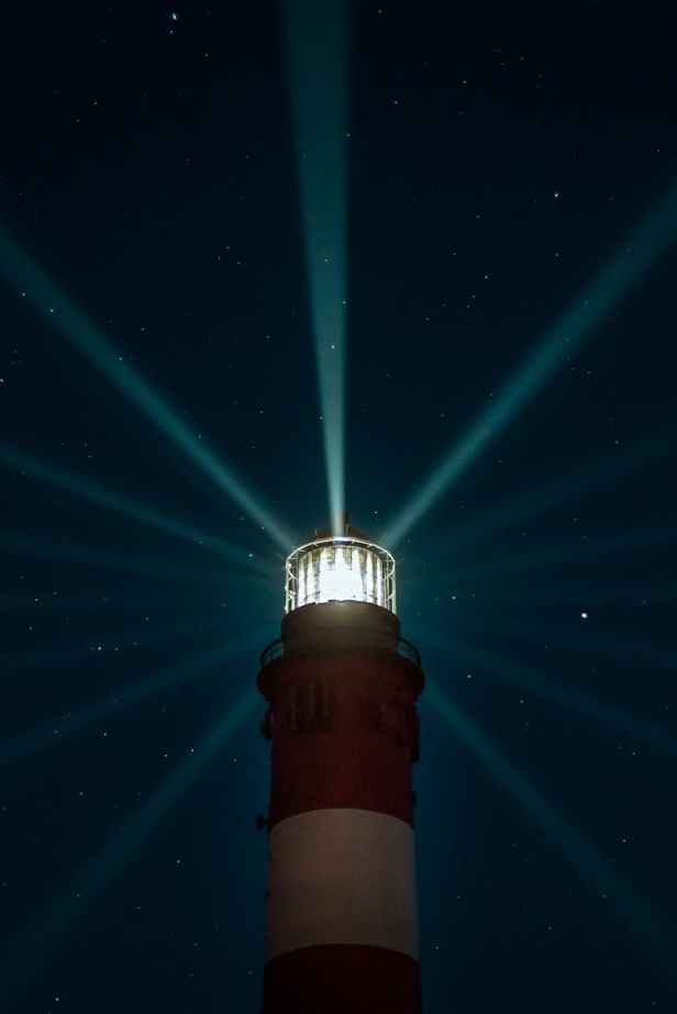 - A beam of light from a buoy or lighthouse that’s been concentrated by prisms or lenses.